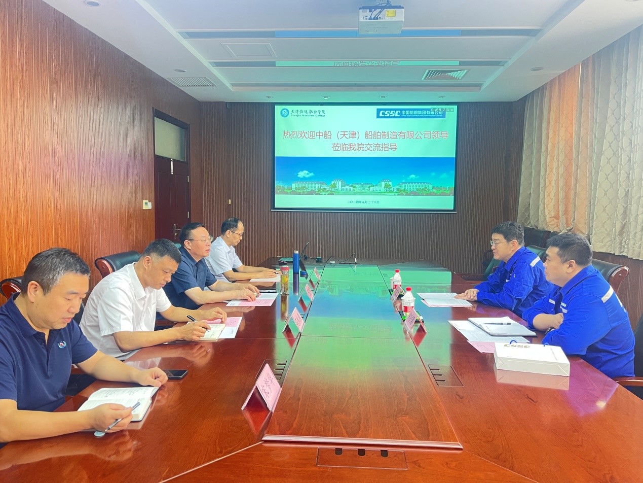 为更好培养船舶与海洋工程装备领域高素质技能人才,赋能天津海洋新质生产力发展,9月26日,中船(天津)船舶制造有限公司(建成中船天津)党委副书记、总经理李安戈、综合管理部副部长刘儒一行受邀走访调研天津海运职业学院,院长于忠武、副院长王明春、教务处处长宋梦华、海洋装备系副主任陈永利参加座谈交流会。