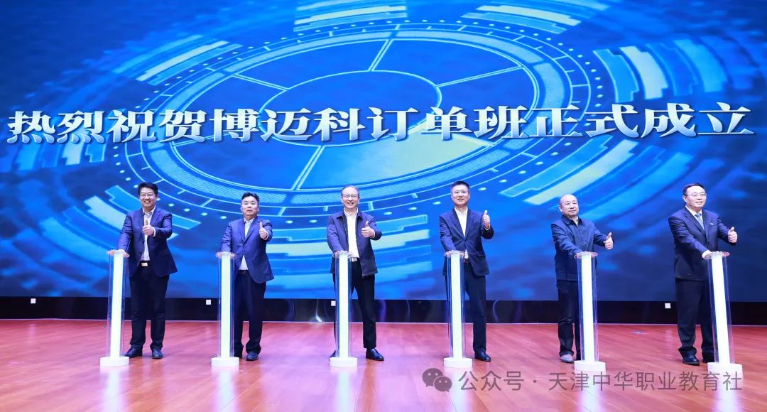 天津市人力资源和社会保障局党组书记、局长沈超,天津市教育委员会副主任、天津中华职业教育社社务委员会副主任罗延安,天津中华职业教育社社务委员会常务副主任、天津市社会主义学院党组成员、副院长关章军出席活动并共同为天津海运职业学院博迈科订单班揭牌。活动由天津海运职业学院党委书记陈昀主持。博迈科海洋工程股份有限公司董事长兼总裁、天津中华职业教育社社务委员会副主任彭文成和天津海运职业学院院长于忠武分别发表了致辞,并向校企双方互聘的“产业导师”“技术技能大师”“学校导师”颁发了聘书。