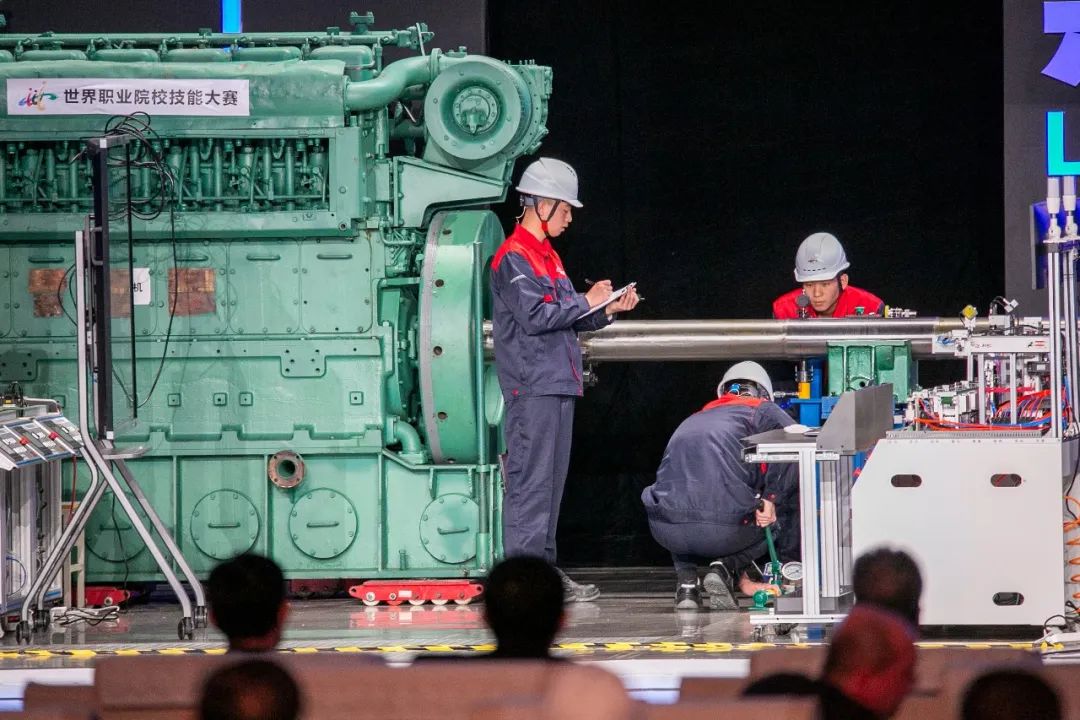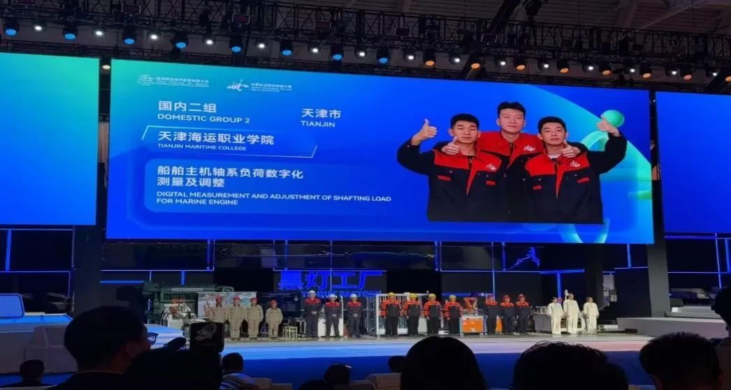 在排位赛阶段,三位参赛选手通过充分推演,以展示关键技术技能要点和创新为突破口,结合行业痛点,将争夺赛阶段的60分钟内容进行凝练提取,最终在10分钟之内向现场裁判展示了传统船舶轴系负荷测量的数字化改良方案,得到了现场裁判的一致好评,再次以总分第一名的成绩晋级冠军总决赛。