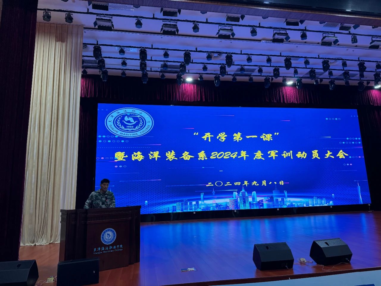 9月8日,“开学第一课”暨海洋装备系2024年度军训动员大会在水上教学训练中心报告厅隆重举行。海洋装备系党支部副书记谭刘元同志担任二营教导员、退伍老兵袁如金老师担任营长、全体辅导员老师担任指导员。