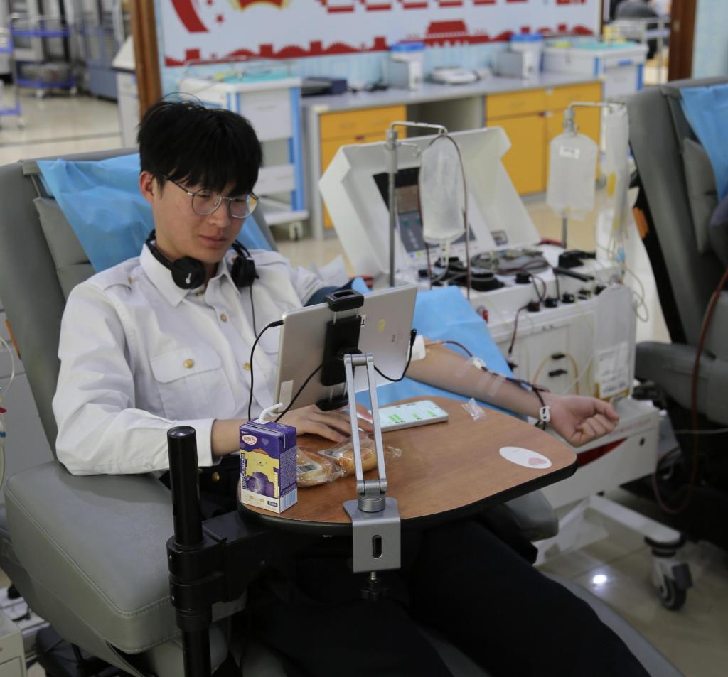 许峰麒同学说:“在献血的过程中,我感受到了前所未有的责任感和使命感,我也深深感受到了献血的意义。”